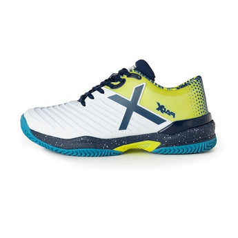 Los tenis de padel Munich PADX es el modelo caracterizado por su resistencia en la zona del empeine gracias a la pieza de TPU inyectado que estructura la base de tejido y que a la vez aporta resistencia a la abrasión en las partes más sufridas.