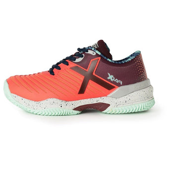 Los tenis de padel Munich PADX es el modelo caracterizado por su resistencia en la zona del empeine gracias a la pieza de TPU inyectado que estructura la base de tejido y que a la vez aporta resistencia a la abrasión en las partes más sufridas.